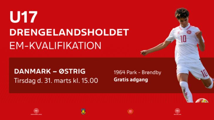 Tirsdag d. 31/3-26 kl. 15:00 spiller det danske drenge U17 Landshold EM Kvalifikation mod Østrig på 1964 Park.